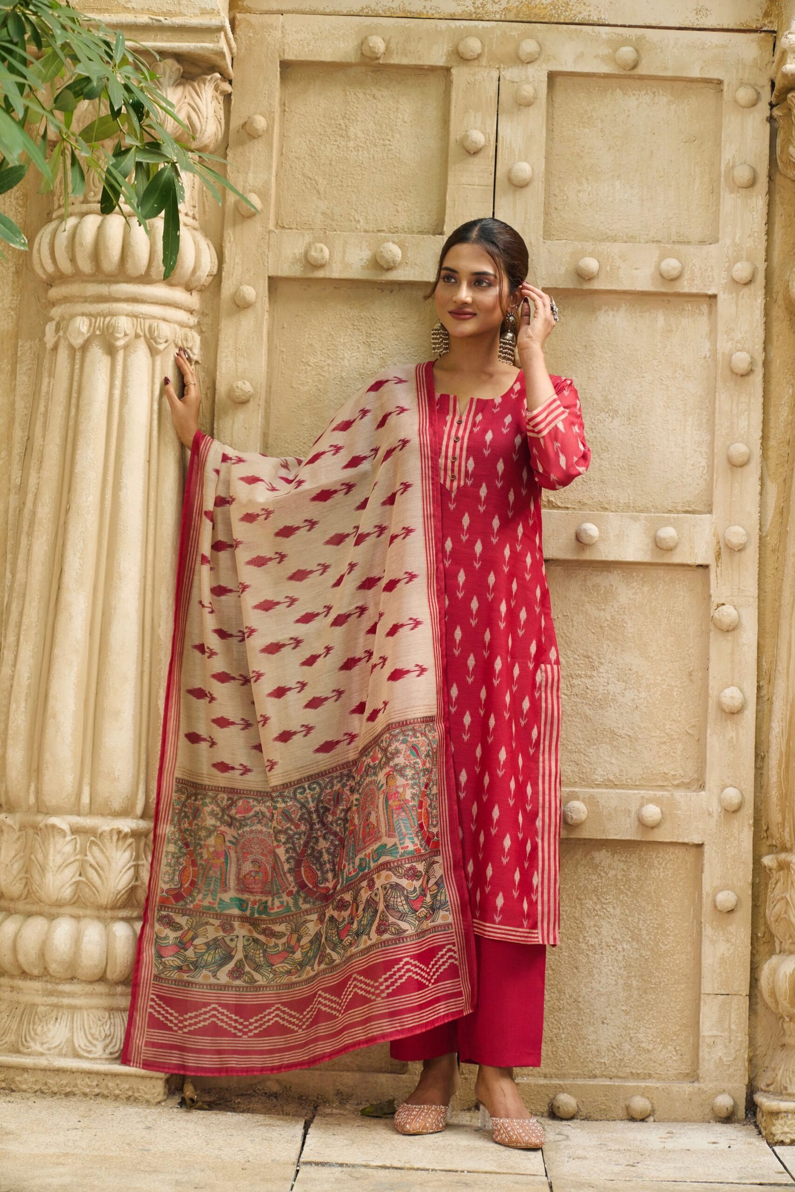 Fabric details: Cotton Silk Kurta with pure mul lining & soft cotton slub Pants with Handloom cotton silk Dupatta.